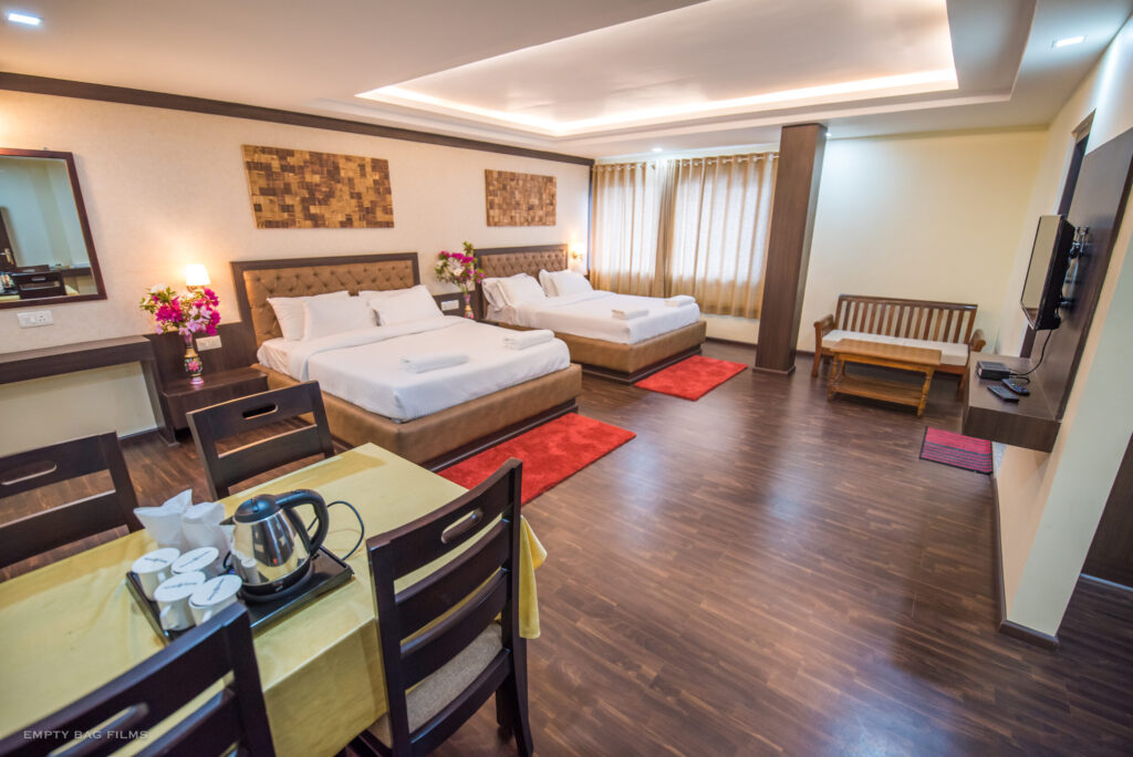 Rishyap is a hidden paradise tucked away at a height of 8500 feet to the east of Kalimpong. Its a small and tranquil rural settlement of the Lepcha community surrounded by dense forests of pine, birch, fir, rhododendrons and orchids with a wonderful view of the vast range of Khangchendzonga and other Himalayan snow peaks. Snug within the Neora Valley National Park, you should come here to the home of the clouds and spend a few days unaccompanied by the bustle of urban life. Forget your life’s worries and breathe in the pure fresh air, soothe your eyes with the greenery and let us pamper you like royalty.